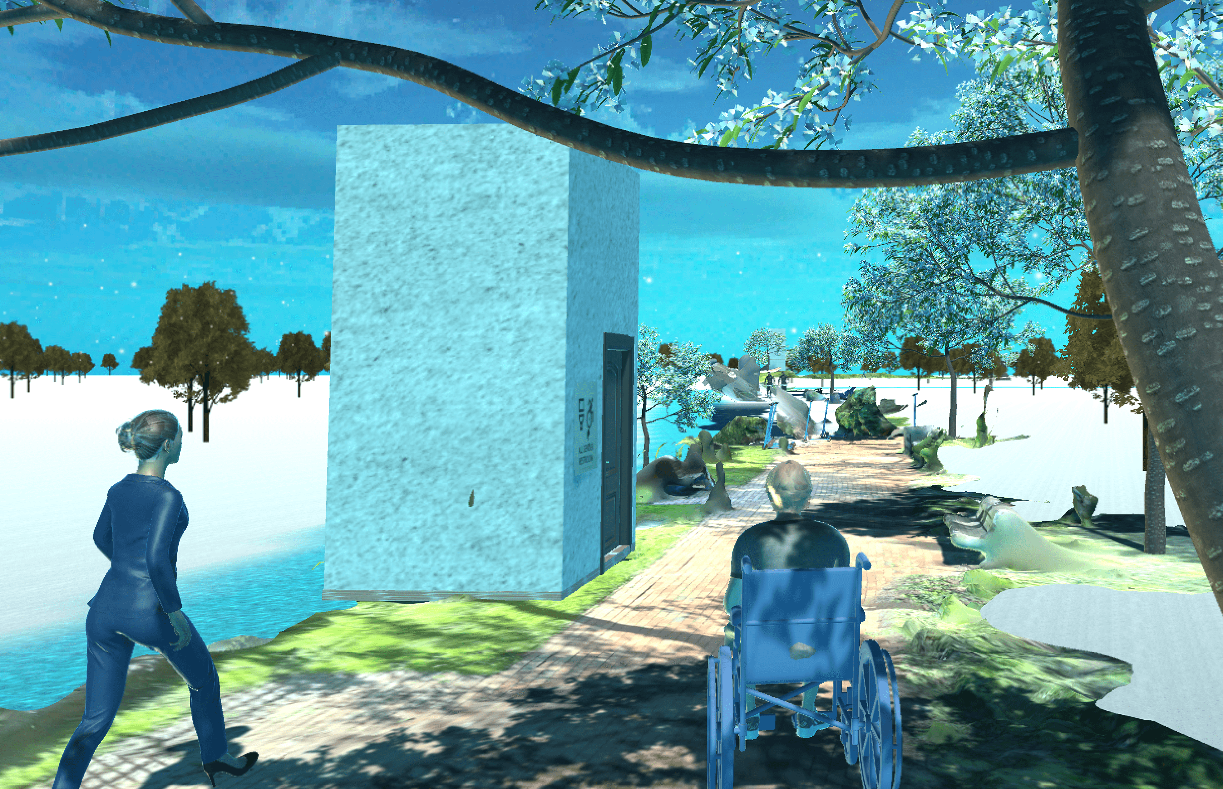 Creekwalk, the immersive applied game reached version 1.0. Users can enjoy the early stage immersive experience as a wheelchair user to better understand the need to improve accessible cities. This version of the game uses real world elements like artwork present at the actual Creekwalk, as well as higher fidelity obstacles with improved physics.